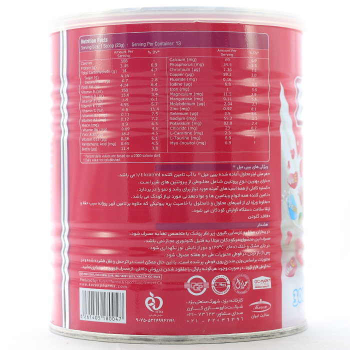 - حاوی پره بیوتیک جهت سلامت دستگاه گوارش کودکان (تنظیم pH روده و پیشگیری از اسهال)